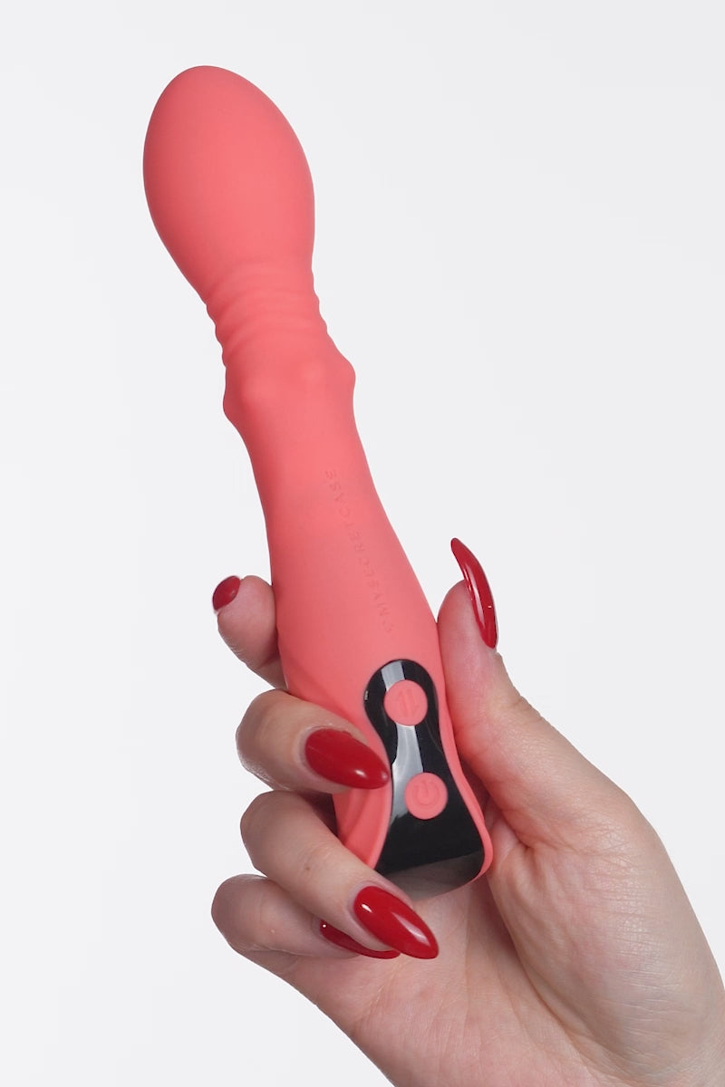 Con la sua texture particolare e una combinazione esplosiva di vibrazione e movimento thrusting ti penetra, vibra, spinge, avanti e indietro: la metamorfosi qui sarà quella del tuo piacere!